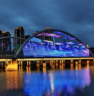 双河LED灯具:因其高效节能、长寿命及色彩丰富等特点,被广泛应用于现代河道亮化项目中。